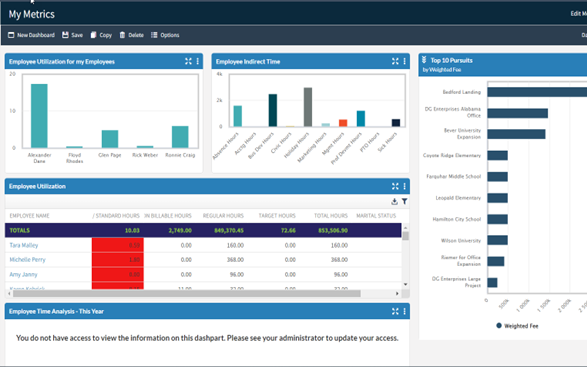With Vantagepoint 6.0, administrators have more flexibility to create a better experience for the end users. One example is the enhanced security for employee dashparts, giving administrators more control over the data available to protect sensitive employee information, while making more relevant data available to the users that need it.